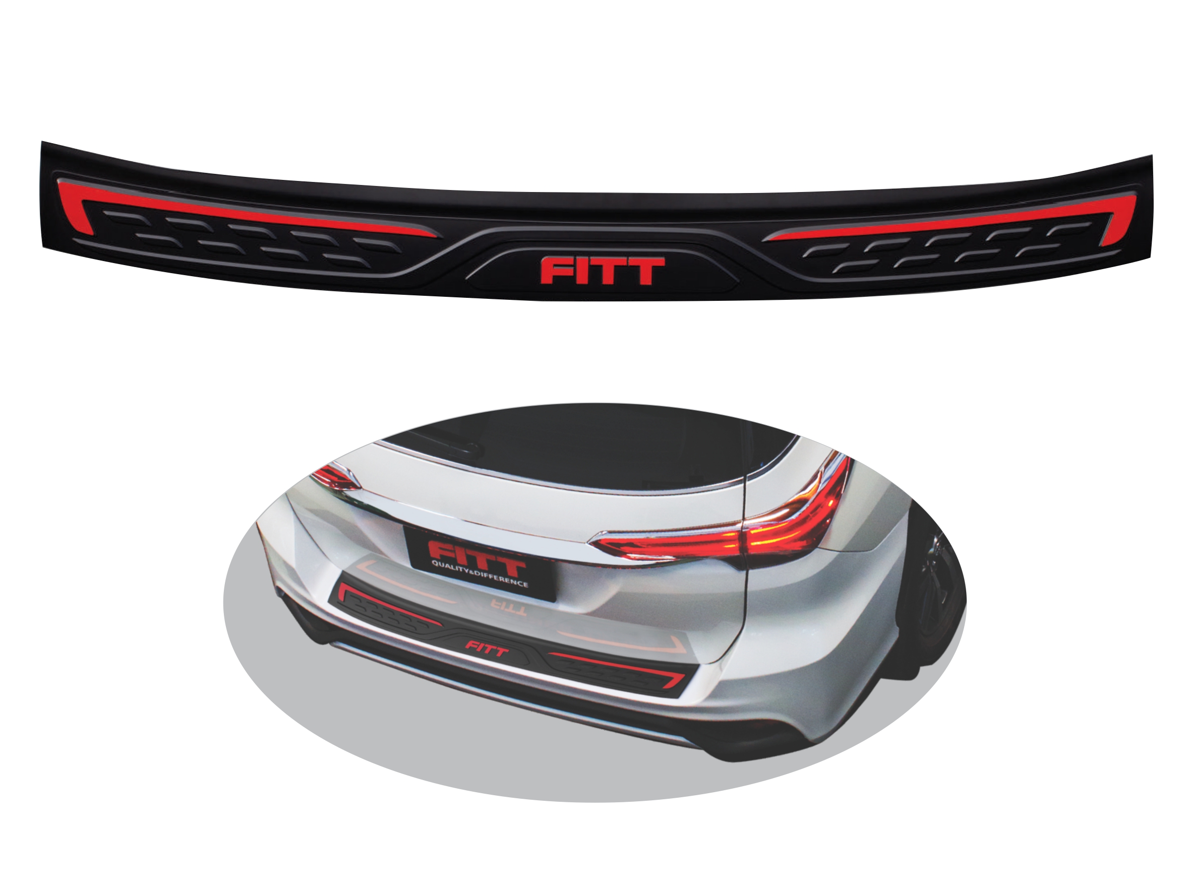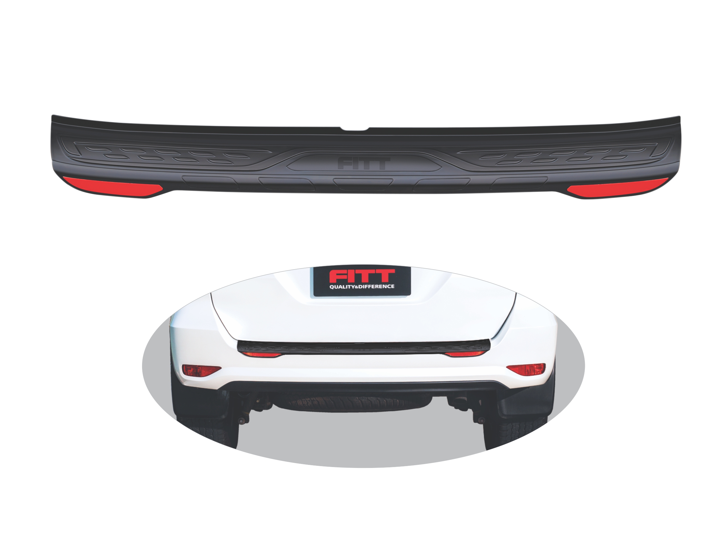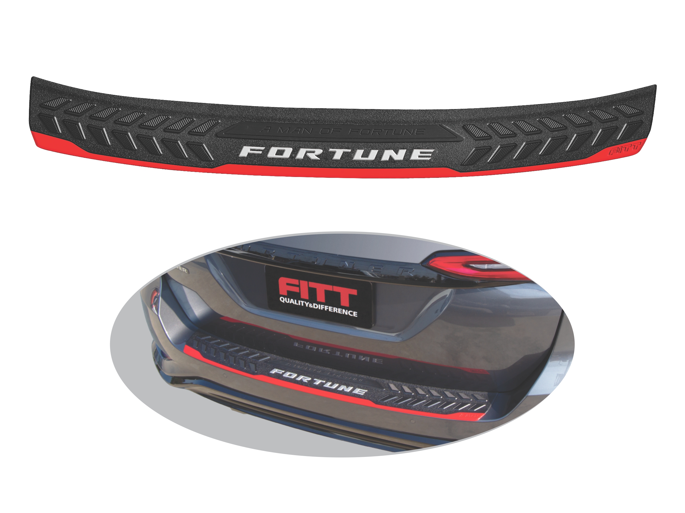 38-09100005แผ่นเสริมกันรอยท้าย FORTUNER 15-ON พ่นสีดำขอบแดงตัวอักษรสีบรอนซ์