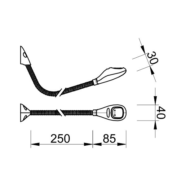 LED Reading Lamp with 250 mm , Flexible Arm Multi-voltage 9-30V.