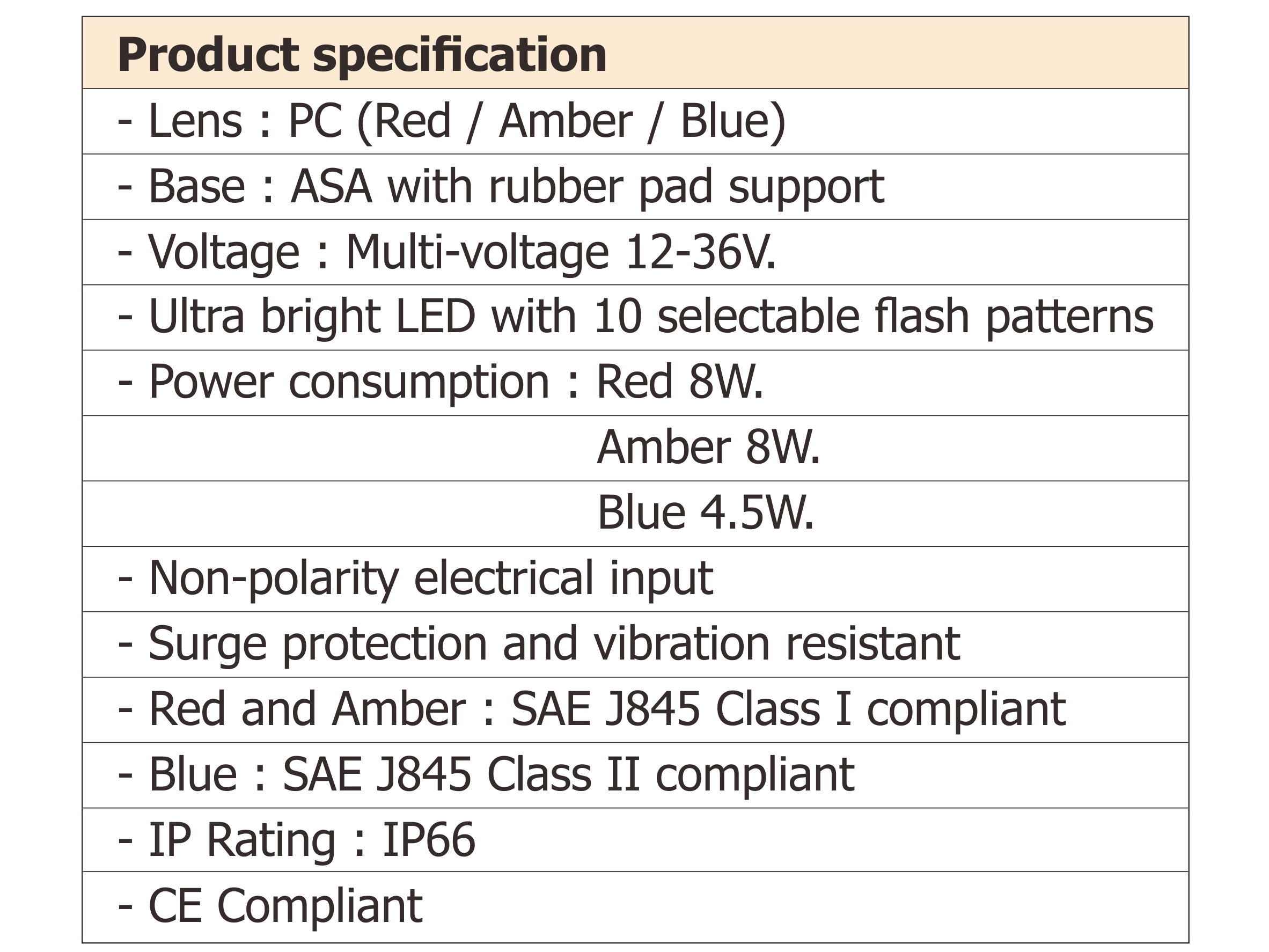 : Red 8W./ Amber 8W./ Blue 4.5W.