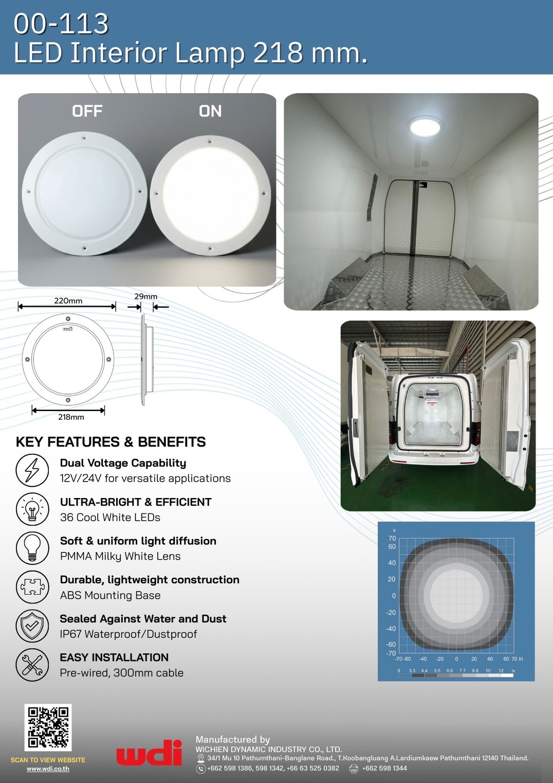 ไฟห้องโดยสาร แอลอีดี ขนาด 220 มม.