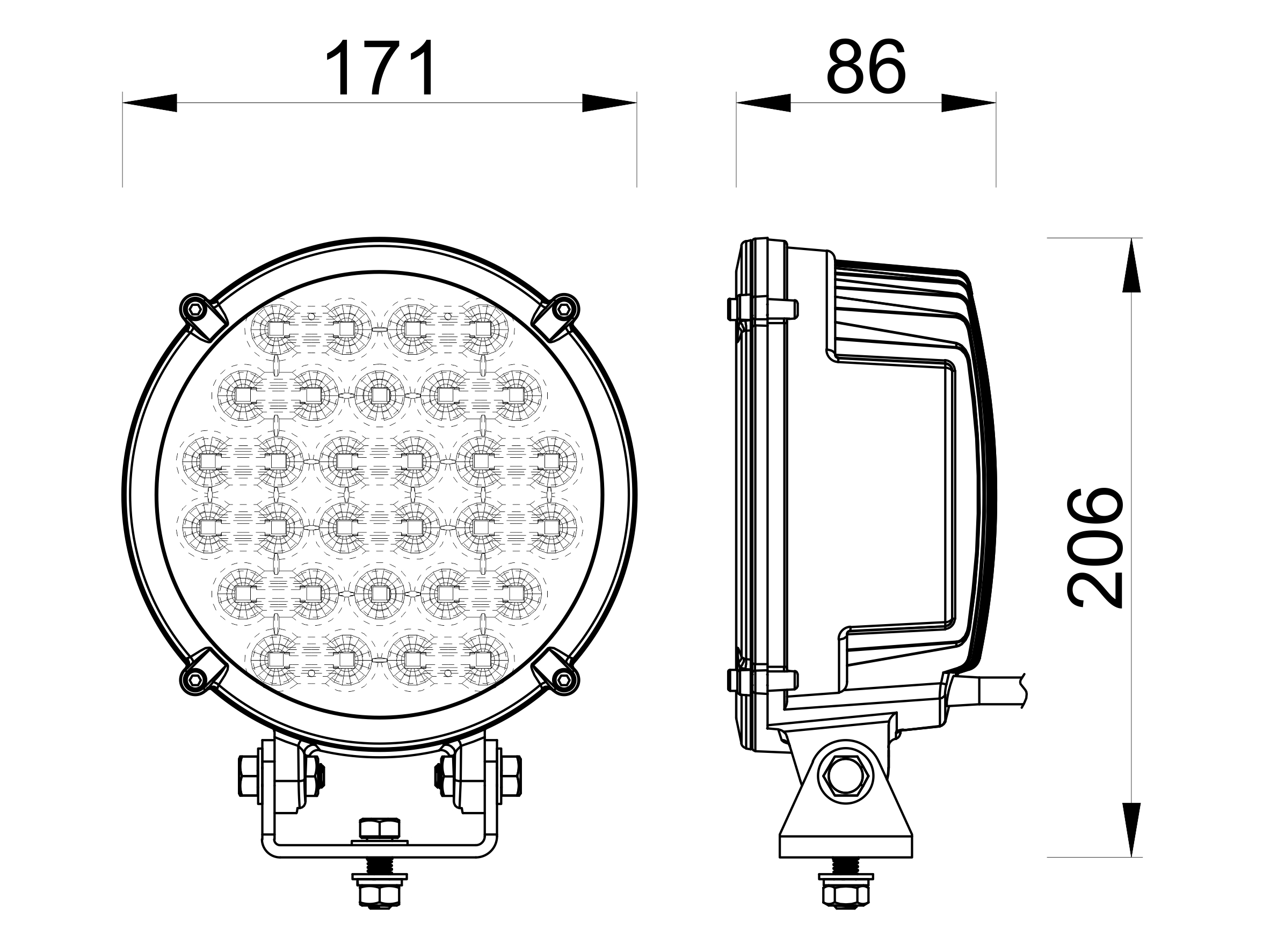 LED Work Lamp Round Multi-votage 9-36V. Spot Beam - 5400lm