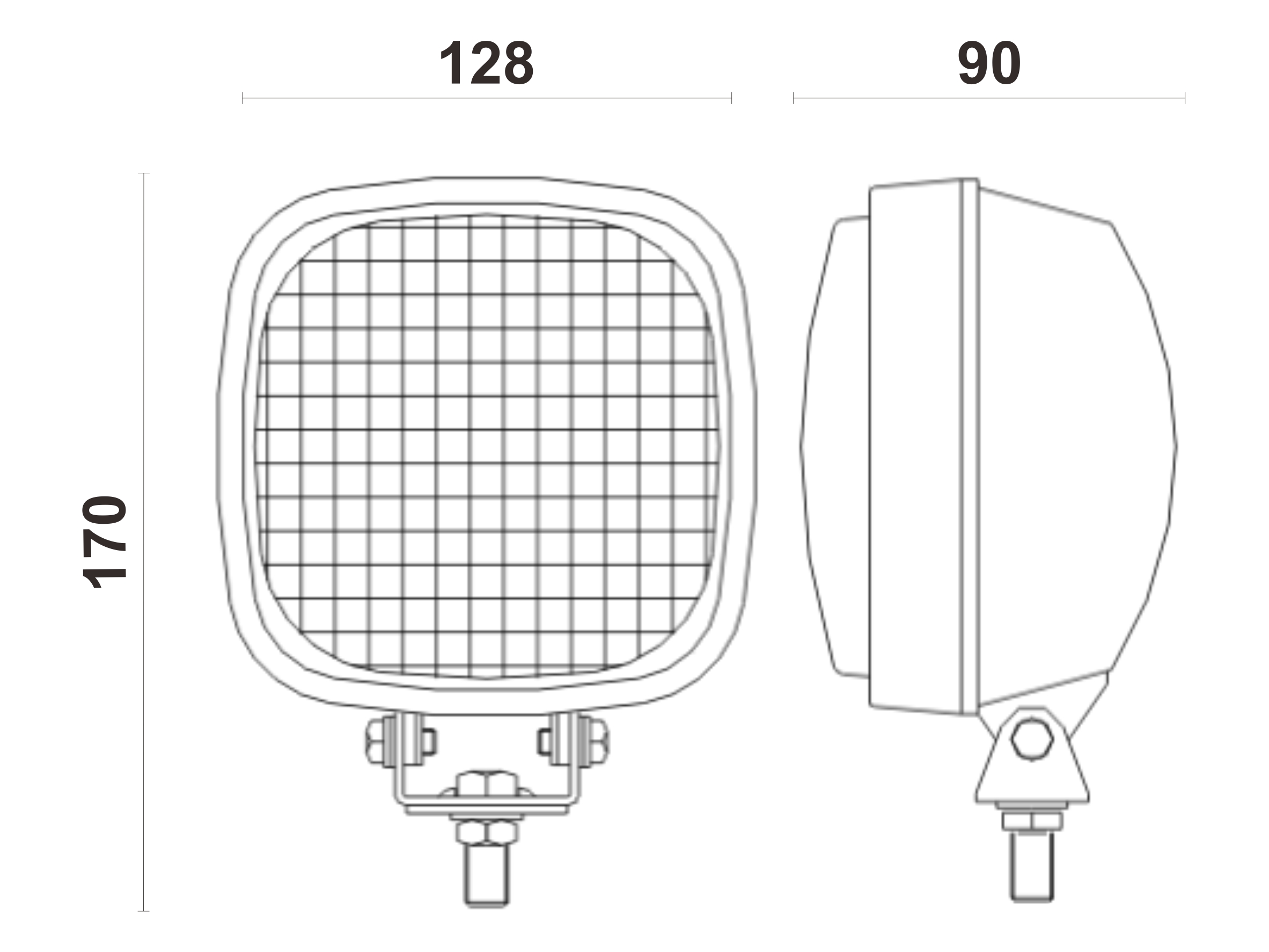 | - H3 12V 55W. or 24V 70W. | | - Glass lens with bubble optic for flood beam | | - PP housing | | - SPCC reflector | | - Dust and water ingress protection rating: IP65 |