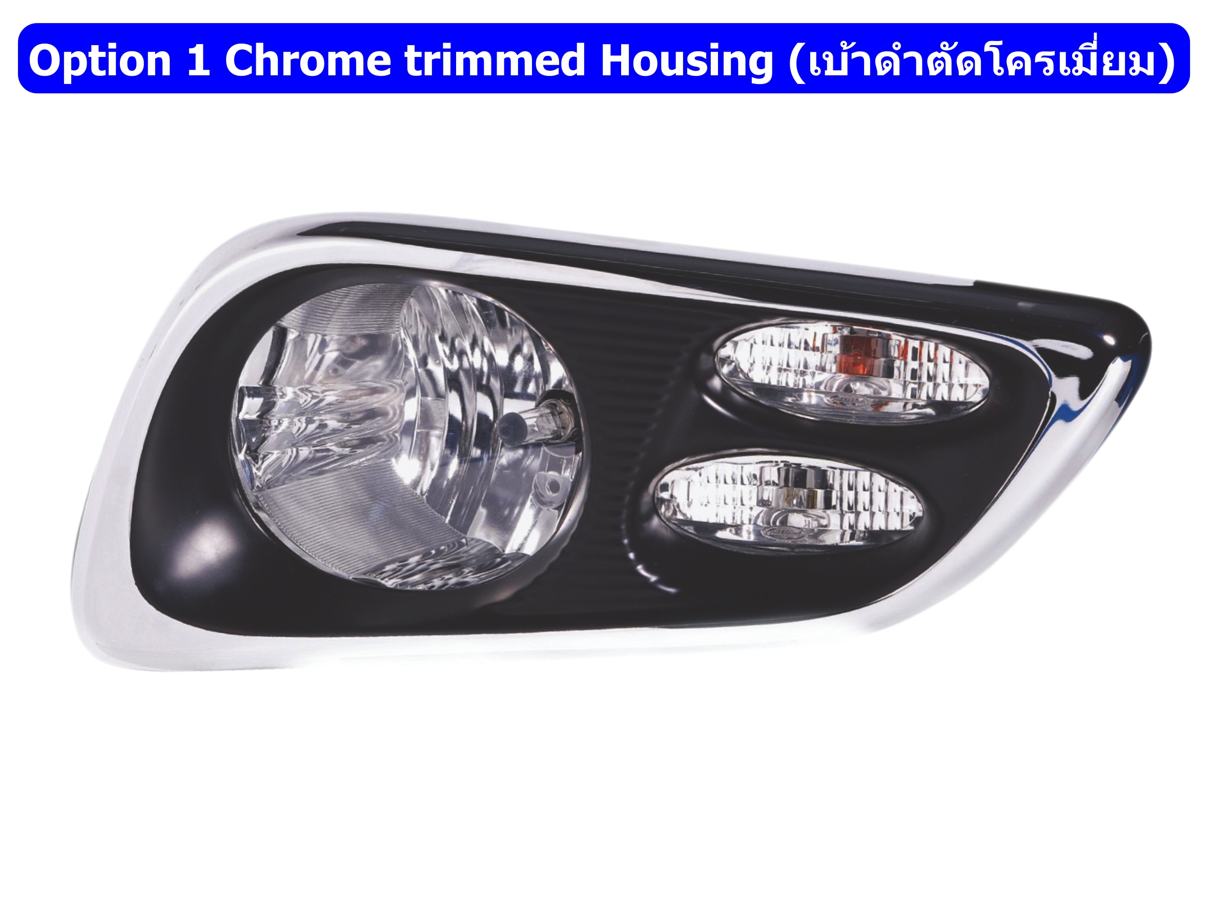 | - Fog Lamp | : HB4 12V 55W (Bulb Included) | | - Front Indicator | : Amber 12V 5W (Bulb Included) | | - Front Position | : White 12V 5W (Bulb Included) | | - Available Housing | : Chrome trimmed or Black |