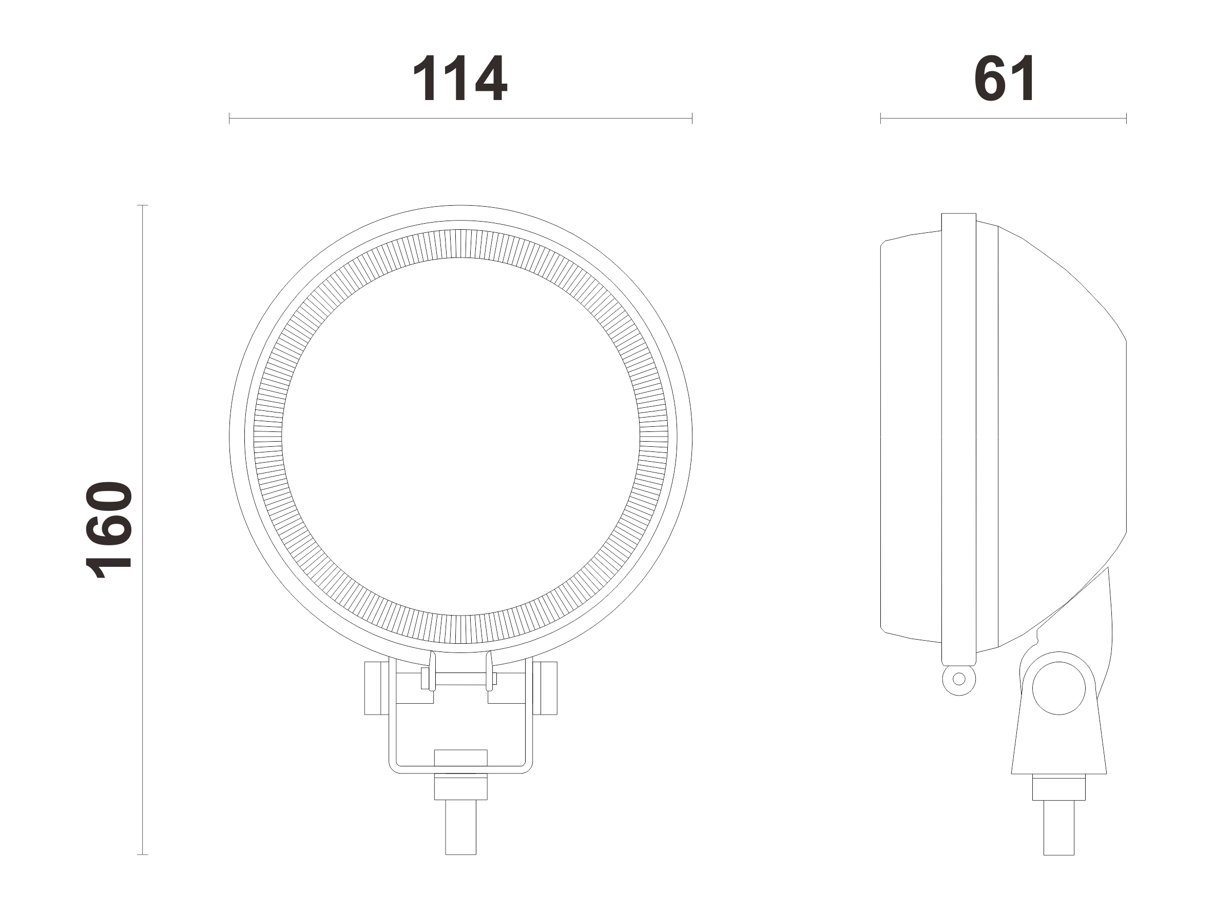| - Housing | : Steel in black | | - Frame | : Stainless steel | | - Glass lens | : Clear | | - Bulb | : H3 12V 55W or 24V 70W |