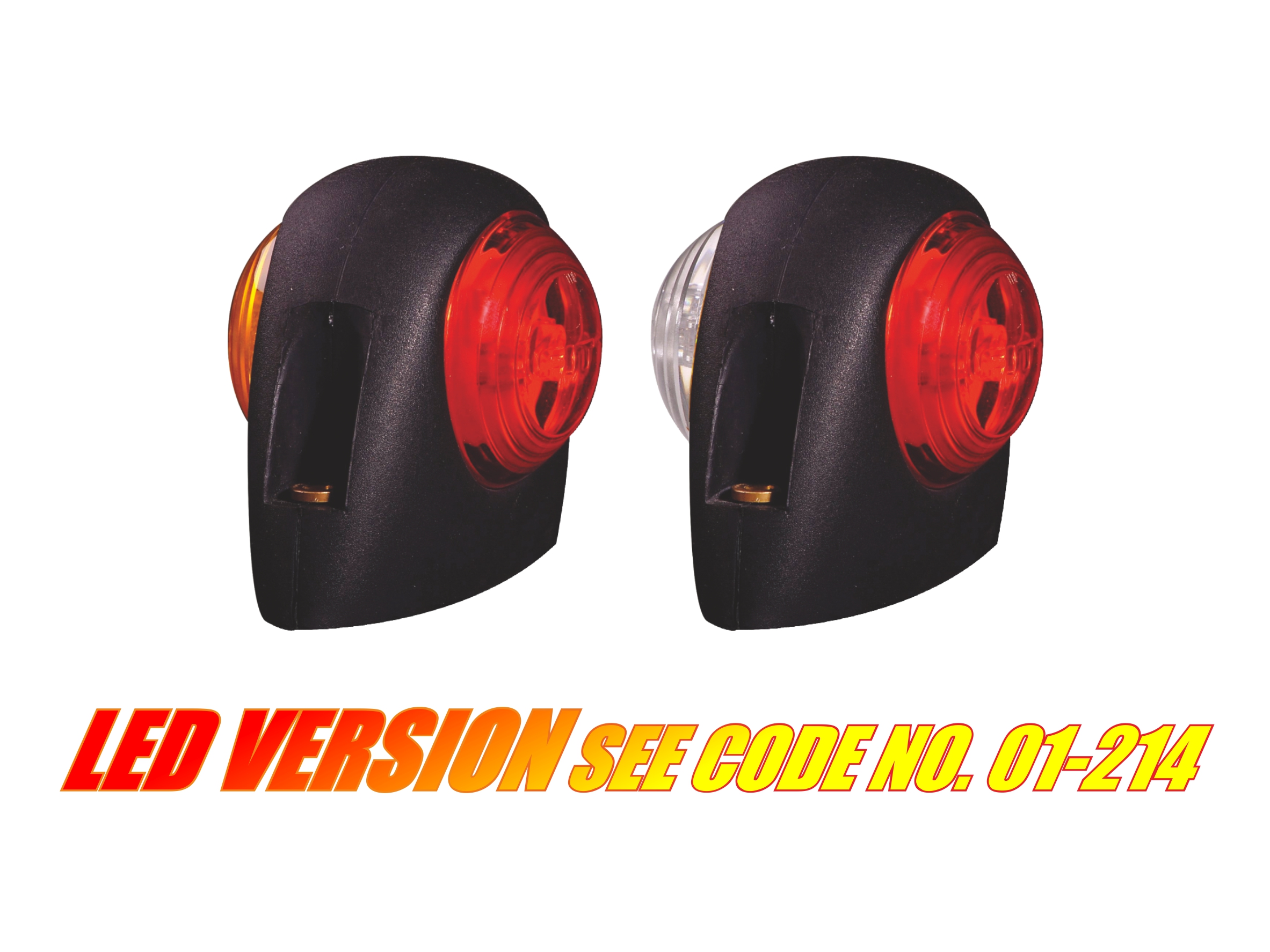 | Lens | : PMMA | | Housing | : Rubber | | Only Red/ Clear is ECE Approved | | | Bulb | : 12V or 24V 5W | | Replacement Lens | : 01-168L |