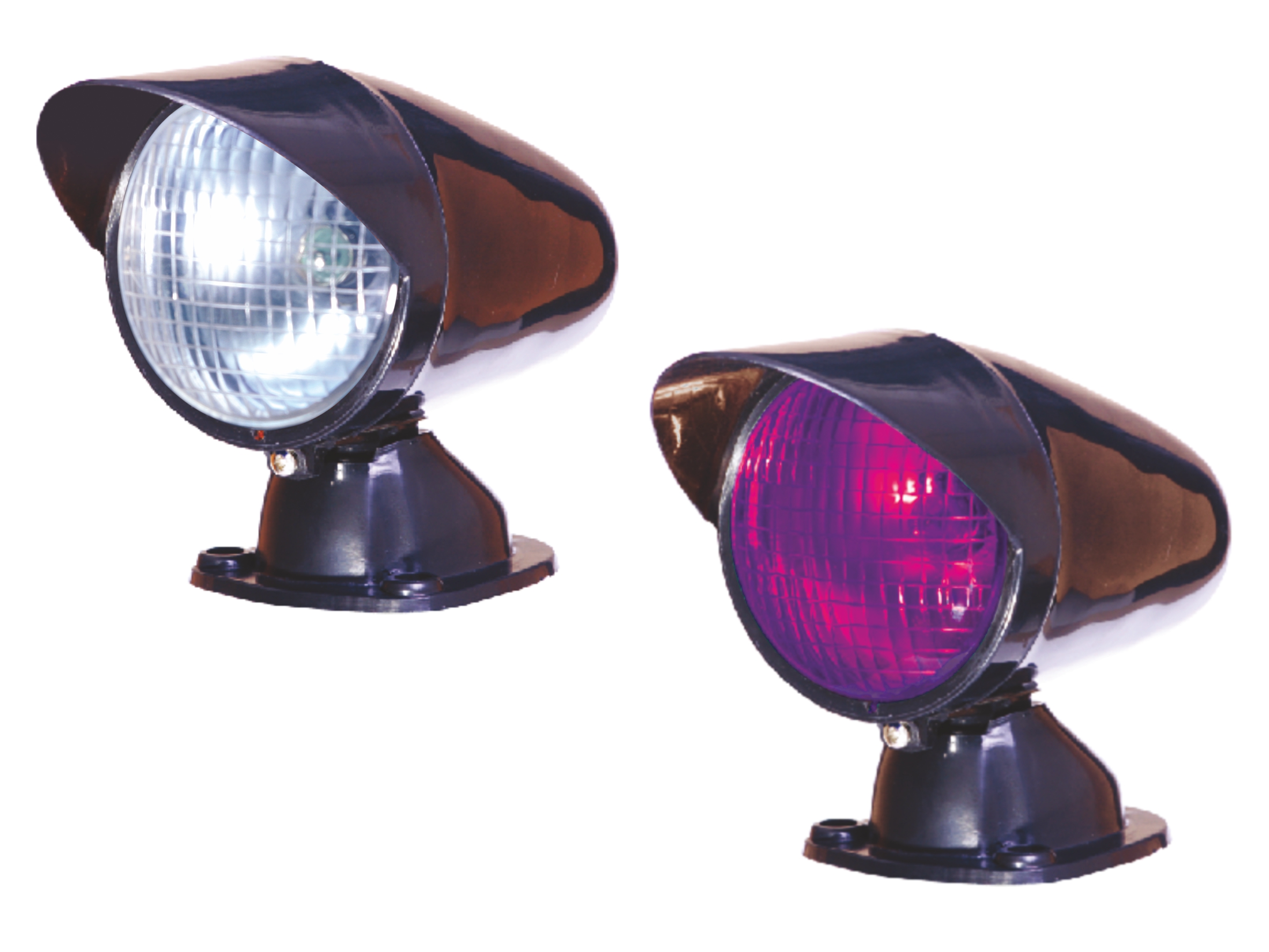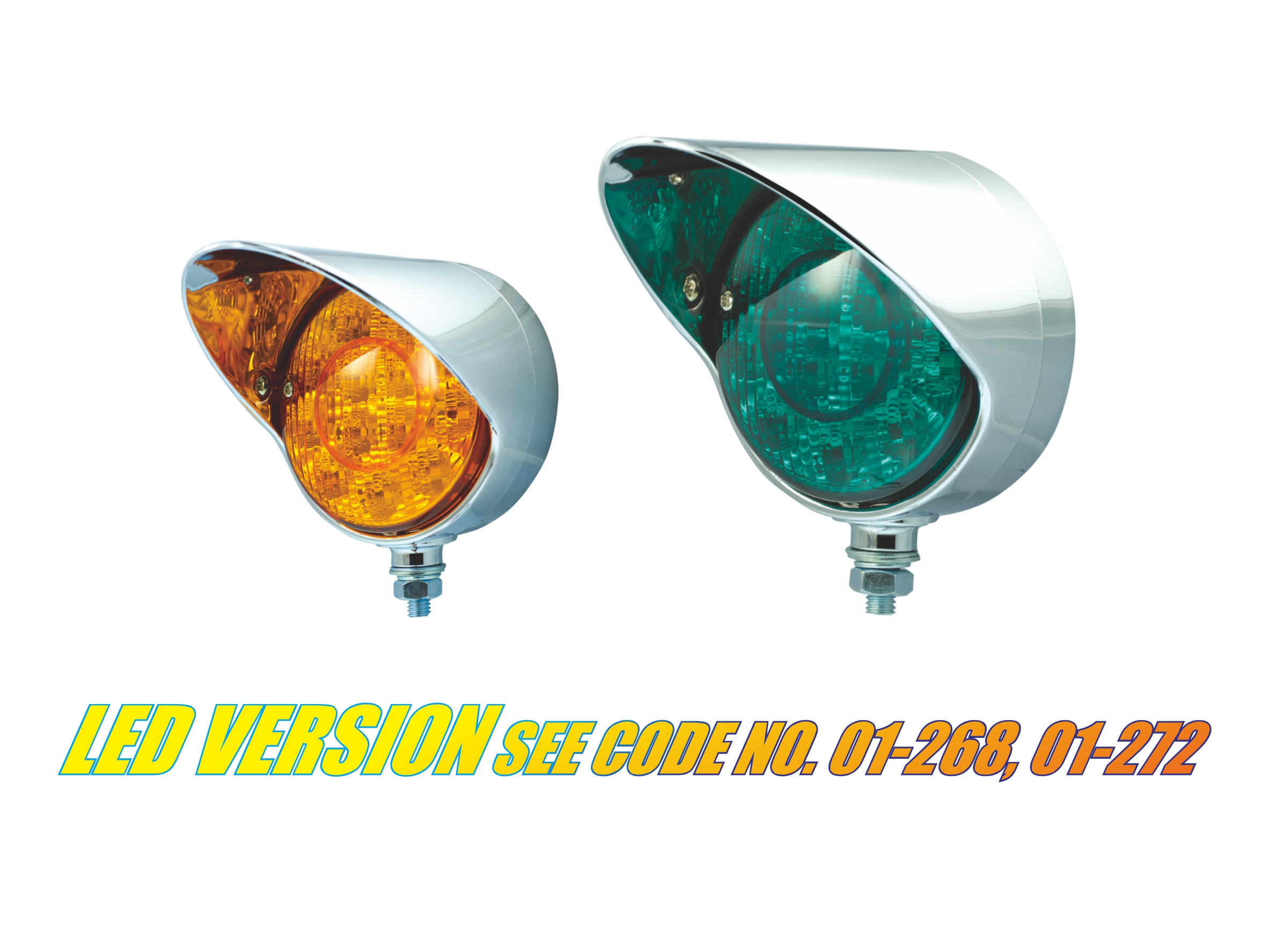 | Lens | : PMMA | | Color | : Red, Amber, Clear, Blue, Green, Violet | | Mounting Base | : ABS | | Bulb | : 12V or 24V 10W | | Replacement Lens | : 01-100L |