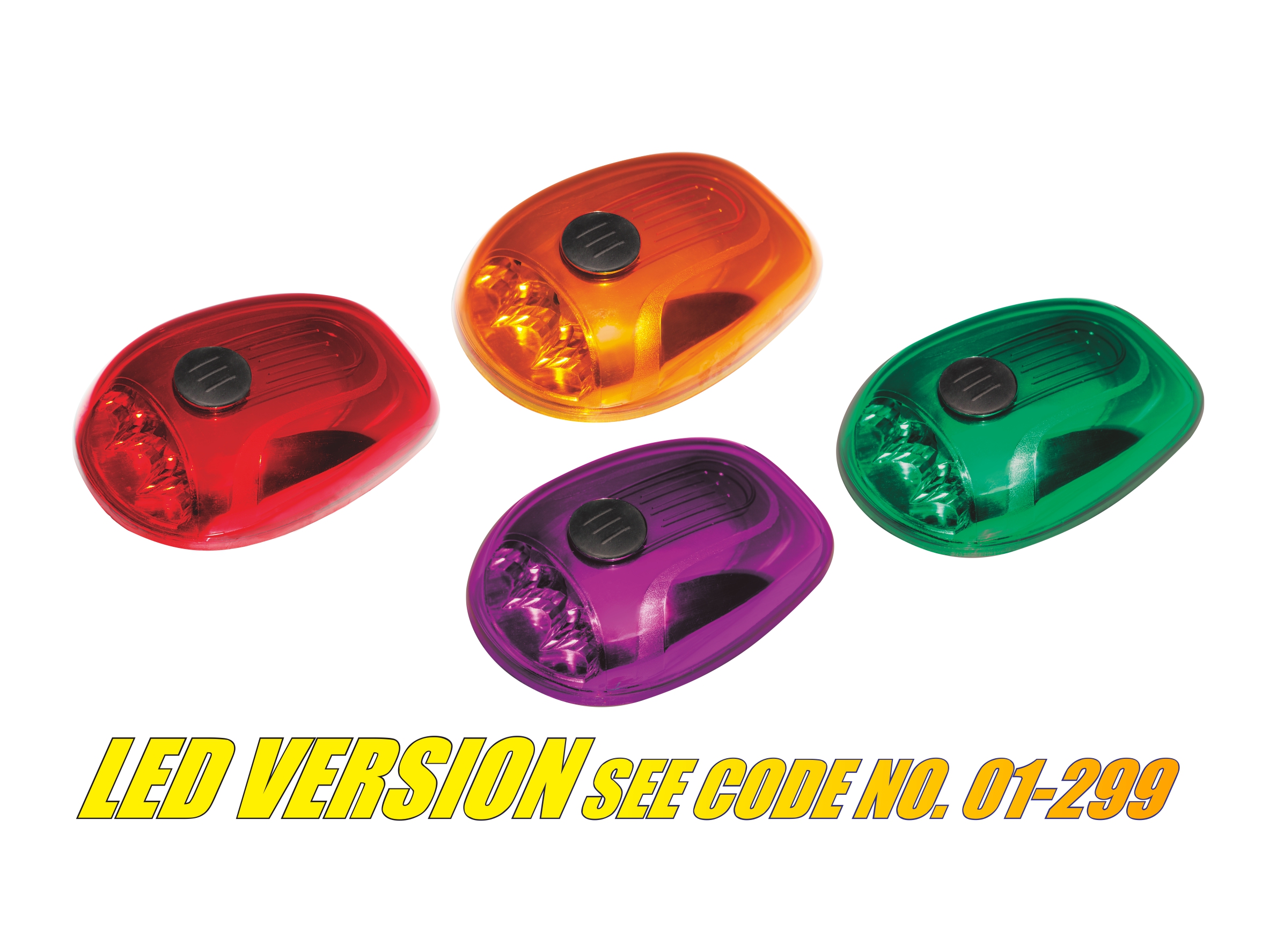 | Lens | : PMMA | | Color | : Red, Amber, Clear, Blue, Green, Violet | | Base | : ABS with rubber pad | | Bulb | : 12V or 24V 10W | | Replacement Lens | : 01-181L |