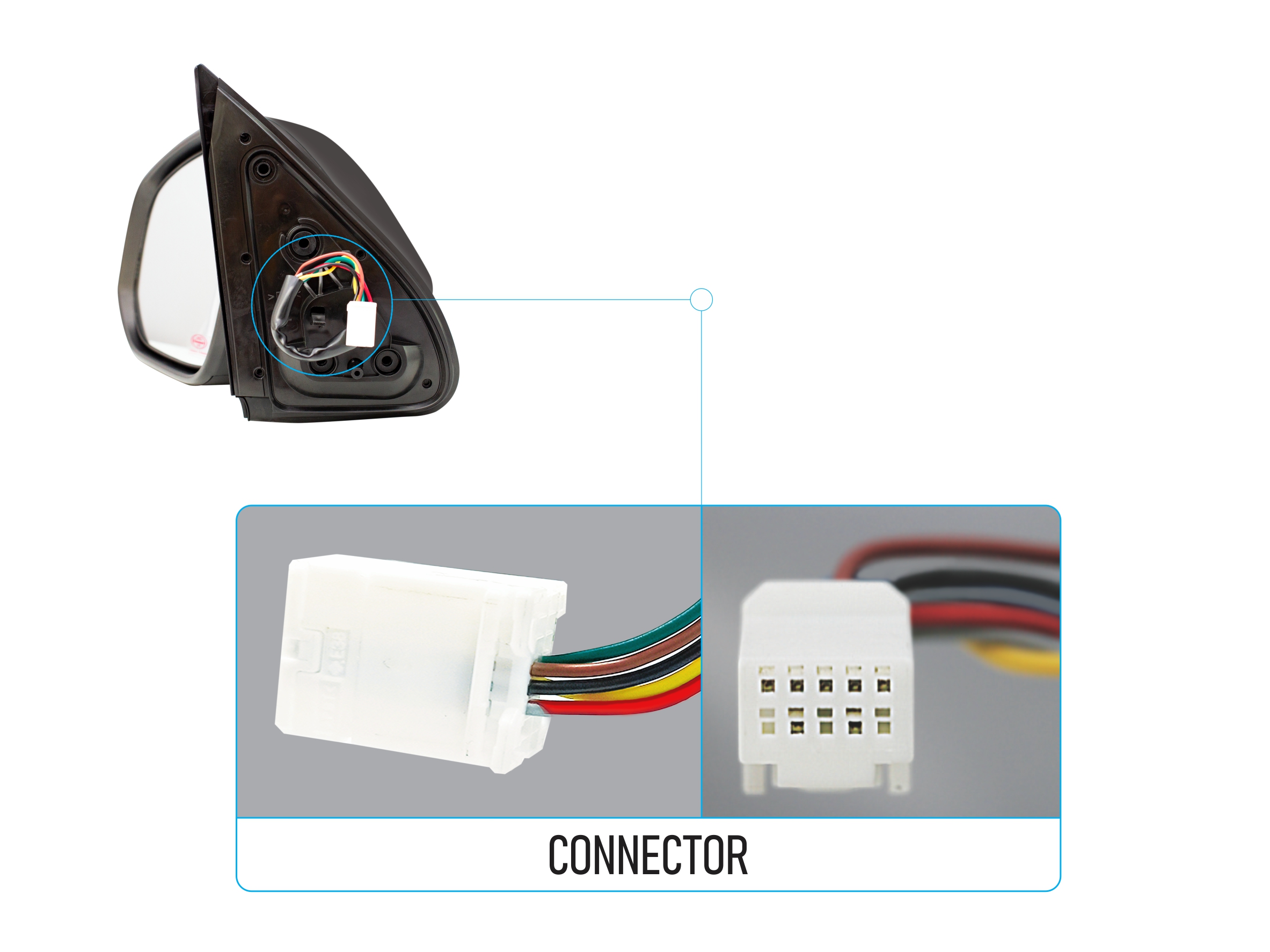 กระจกมองข้างไฟฟ้าหลังดำ พร้อมไฟเลี้ยว LED สายไฟ 5 สาย