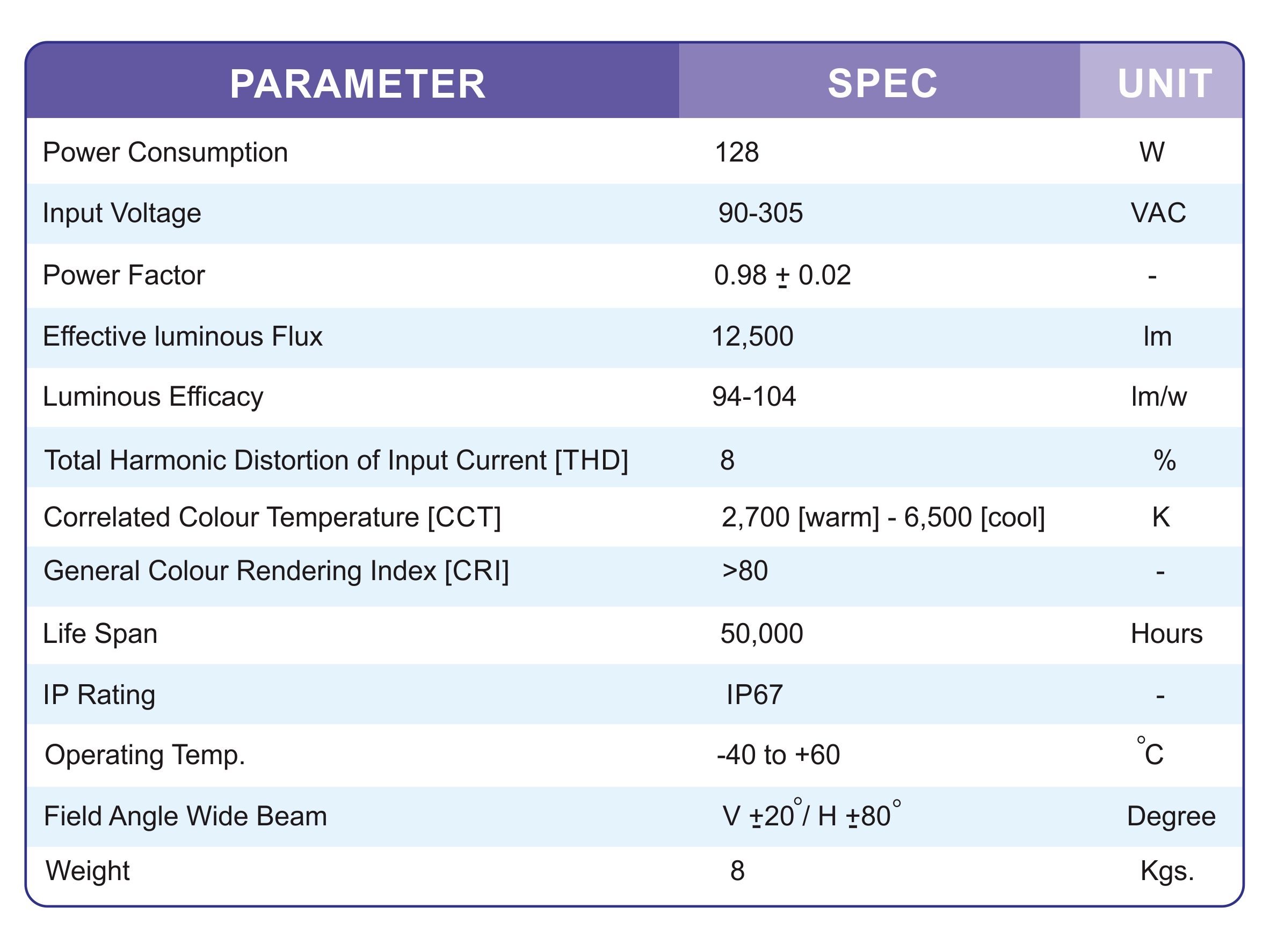 | - แอลอีดีคุณภาพสูง กำลังไฟ 128 วัตต์ |