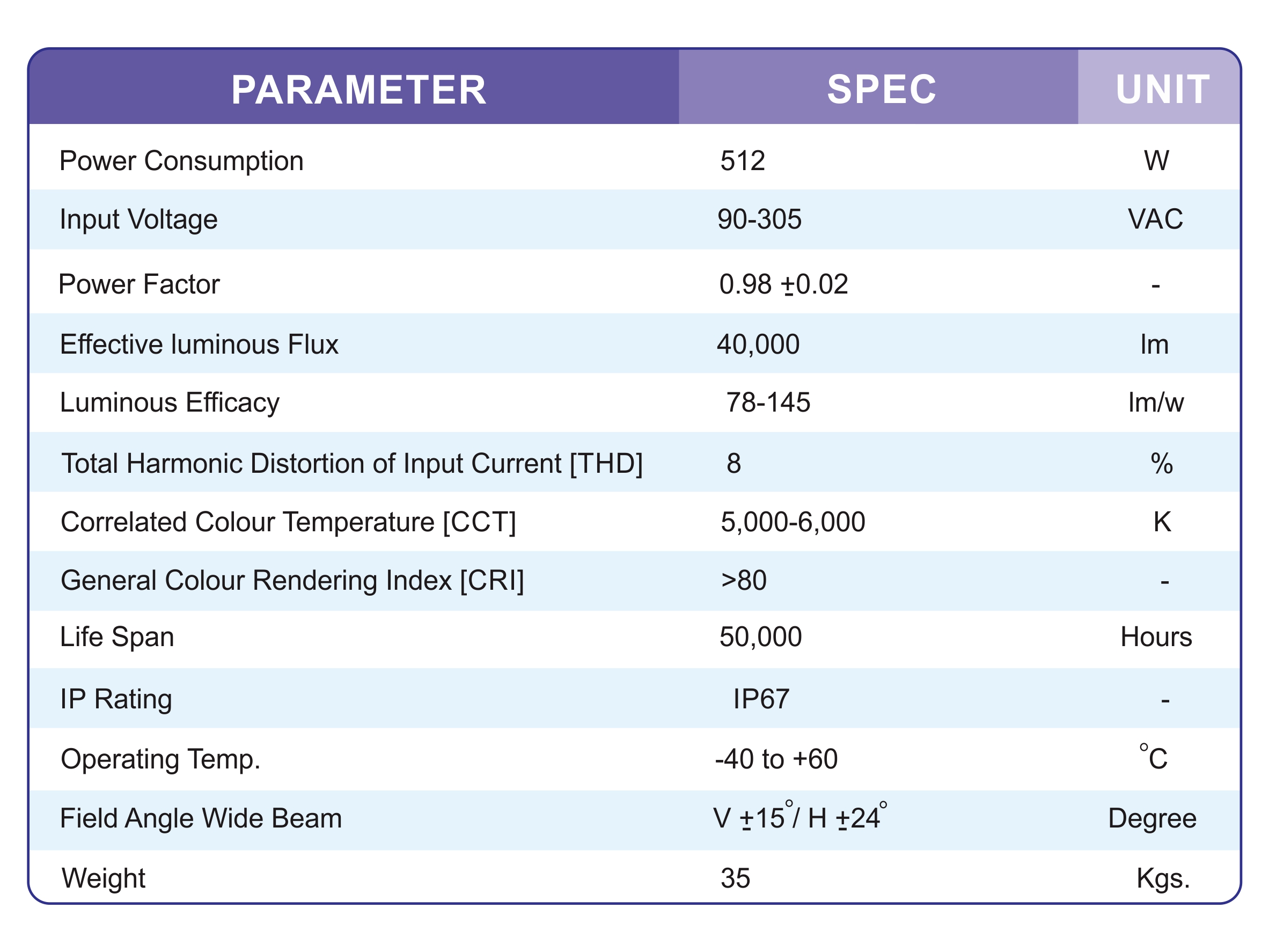 | - แอลอีดีคุณภาพสูง กำลังไฟ 512 วัตต์ |