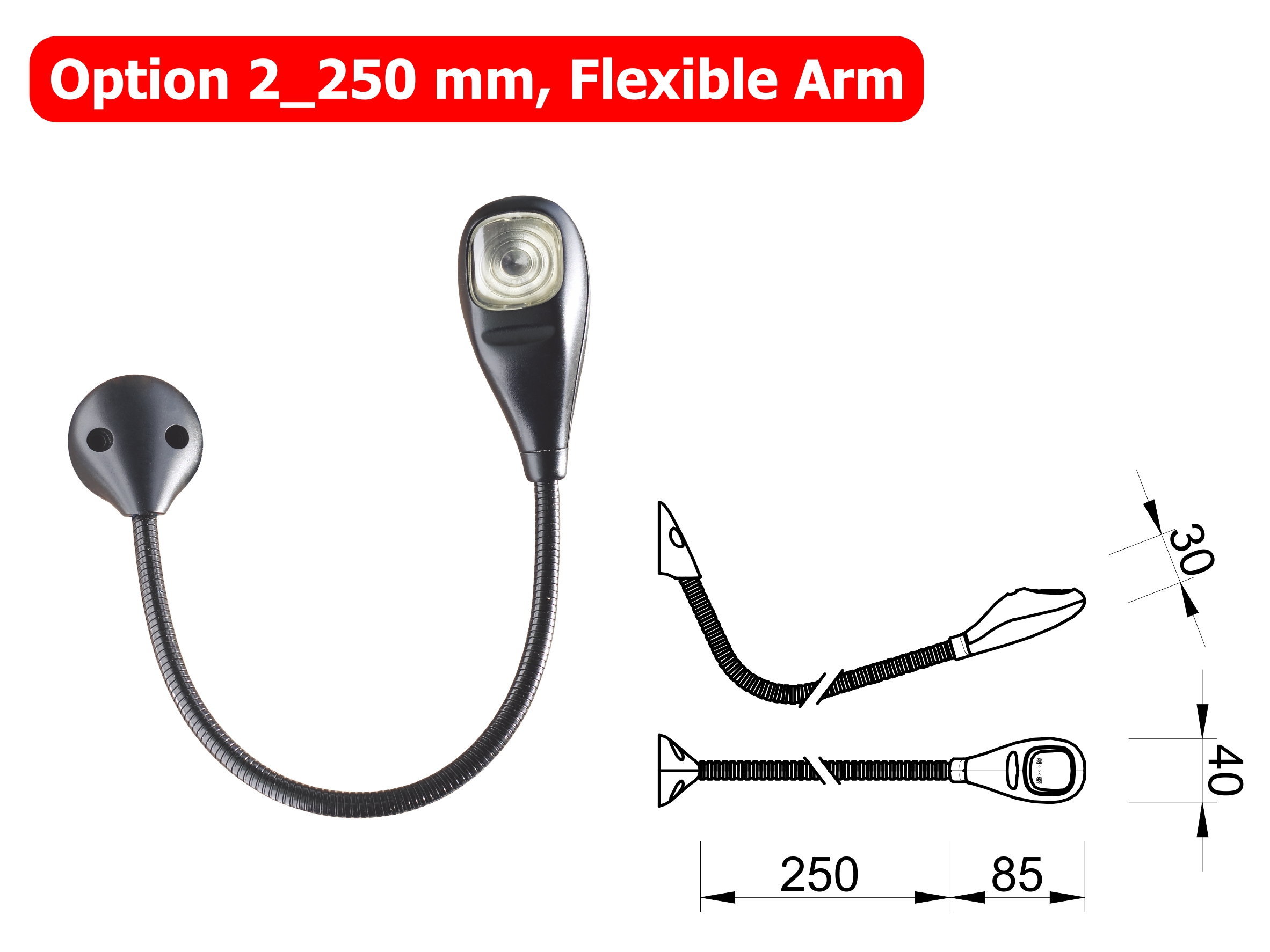 LED Reading Lamp with 150 mm , Flexible Arm Multi-voltage 9-30V.